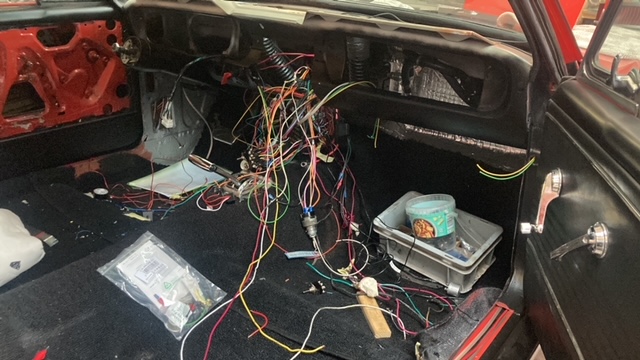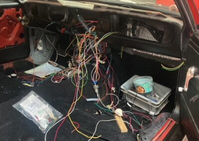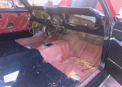 Deze American car wordt technisch totaal aangepakt en in orde gemaakt. Het begin is er! Alle elektra is als eerst verwijderd. Alle bedrading is nagelopen, vervangen en aangepast, aangesloten op vakkundige wijze, waarbij een extra accu is geplaatst. Op wens van de client wordt er een vliegtuigconsole lijkende cockpit geplaatst, waaruit alles straks wordt bediend. Al met al wordt dit een uniek plaatje, waarbij de klant zijn wensen bespreekbaar en tot uitvoering kan laten brengen door one piece at a time. Wat zeker gaat lukken!